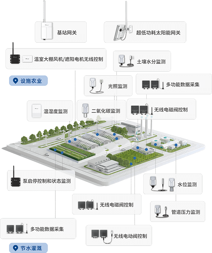 星纵物联基于LoRaWAN®的智能物联网产品通过感知环境数据,实现对农田灌溉、温室大棚、蔬果种植、园林绿化、水产养殖等场景全方位、数字化的无线监测,让农业生产和管理更智慧、更高效。