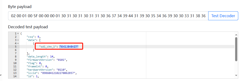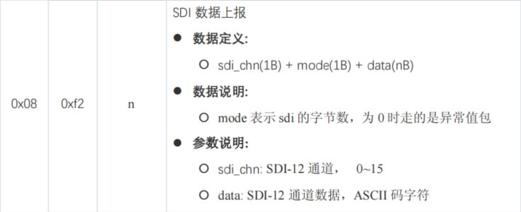 000e:00(SDI12通道)0e(SDI数据的字节数)