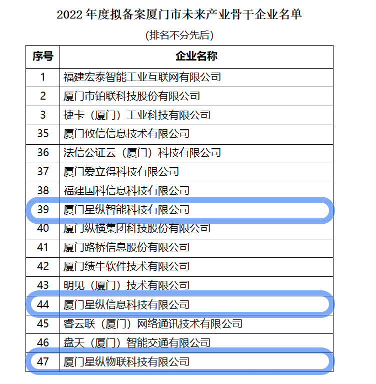 近日,厦门市科技局公布了“2022年度厦门市未来产业骨干企业”名单,星纵智能及其旗下子公司星纵智能、星纵信息,以“新一代人工智能”的未来产业品类,一同入选名单。