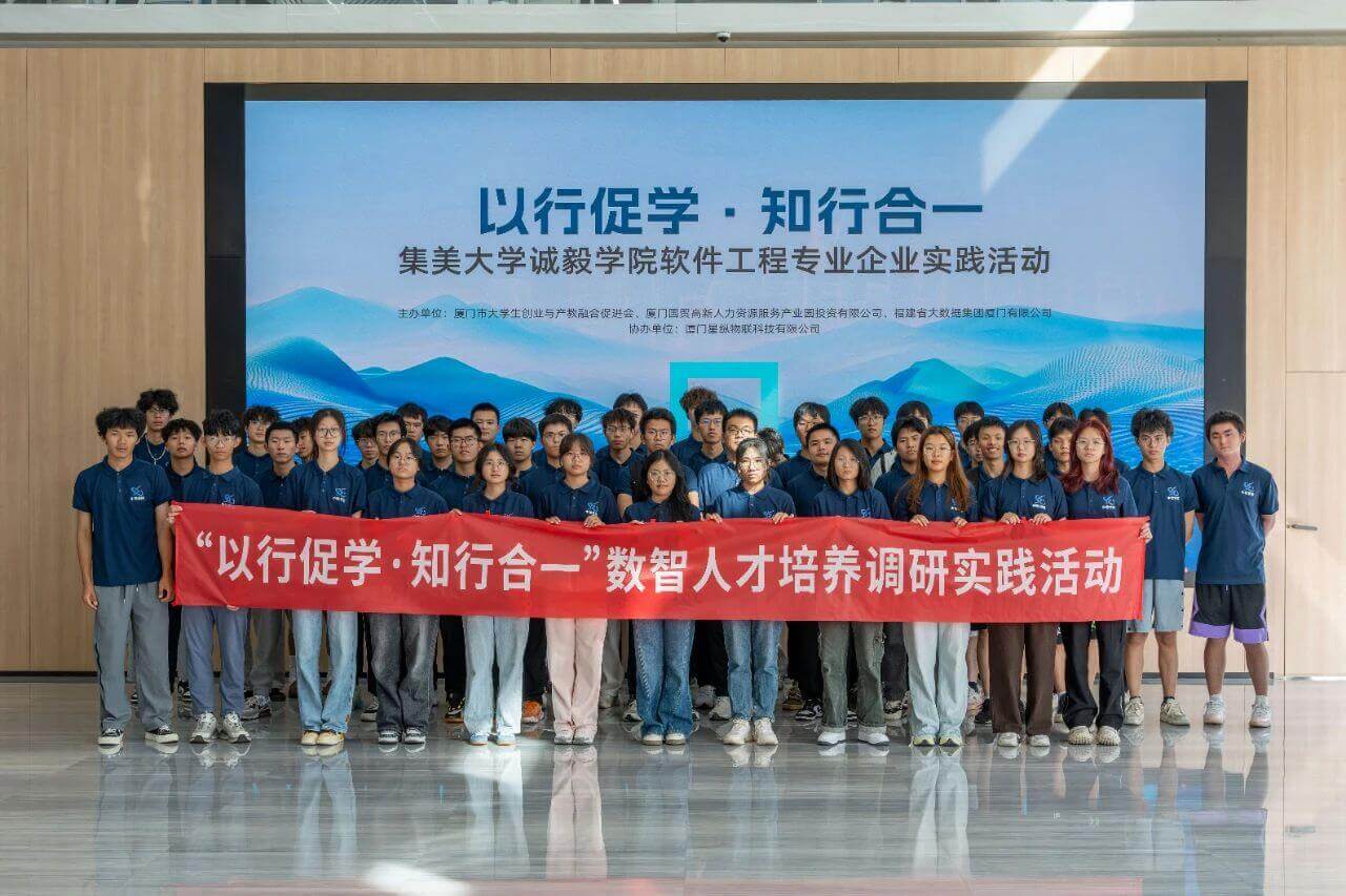 10月30日,由厦门市大学生创业与产教融合促进会、厦门国贸高新人力资源服务产业园投资有限公司、福建省大数据集团厦门有限公司主办,开云棋牌澳门 协办的“以行促学·知行合一”厦门集美大学诚毅学院软件工程专业企业实践活动在星纵大楼圆满举行。