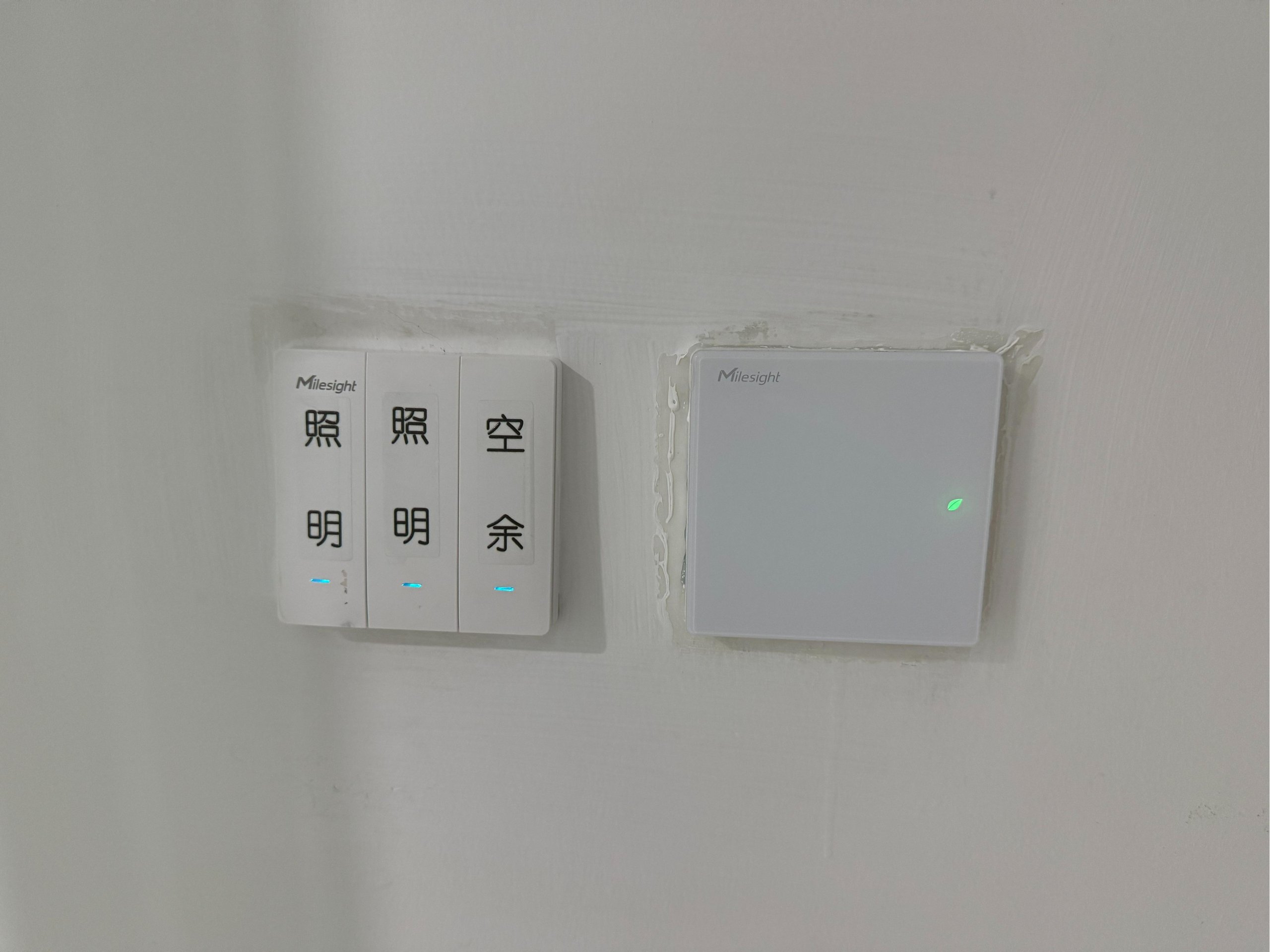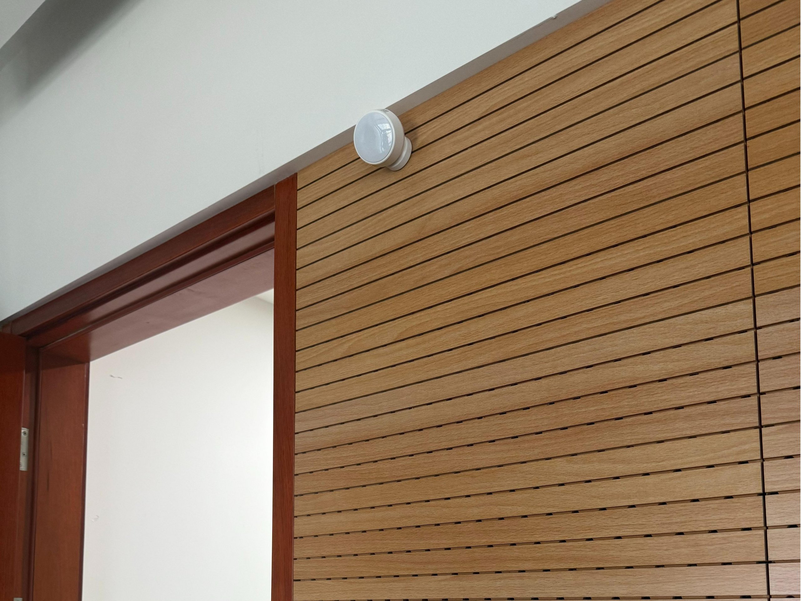 雷达人体存在传感器安装在会议室、茶水间、打印室,当设备检测到该区域有人时,通过Milesight D2D通信联动控制智能开关面板,自动打开灯光,实现“人来灯开、人走灯灭”的智能控制。