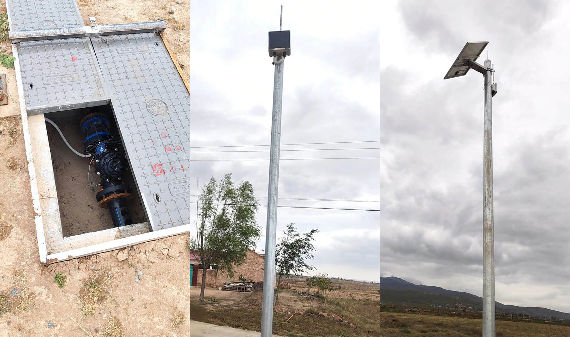 UG67室外型网关:室外型网关以抱杆的形式安装,通过太阳能供电,4G SIM卡上网。电磁阀控制器采集的数据通过LoRaWAN®无线传输方式发送到网关,网关再通过MQTT协议对接到高效节水灌溉平台,在平台上可以控制和监测田间阀门的状态。