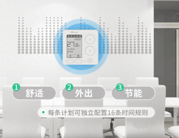 在炎炎夏日场景中,实现室内温度的智能调节与精准控温,对人体健康保障、建筑节能环保及延长制冷设备寿命具有重要意义。智能风机盘管温控器作为精准控制室温、提升体感舒适度的重要设备,依托高精度传感器,实时精准监测室内环境温湿度变化并快速响应,精准调节冷 / 热量输出量,保障环境舒适度的同时提升能源效率,降低碳排放强度,助力实现 “双碳” 目标。