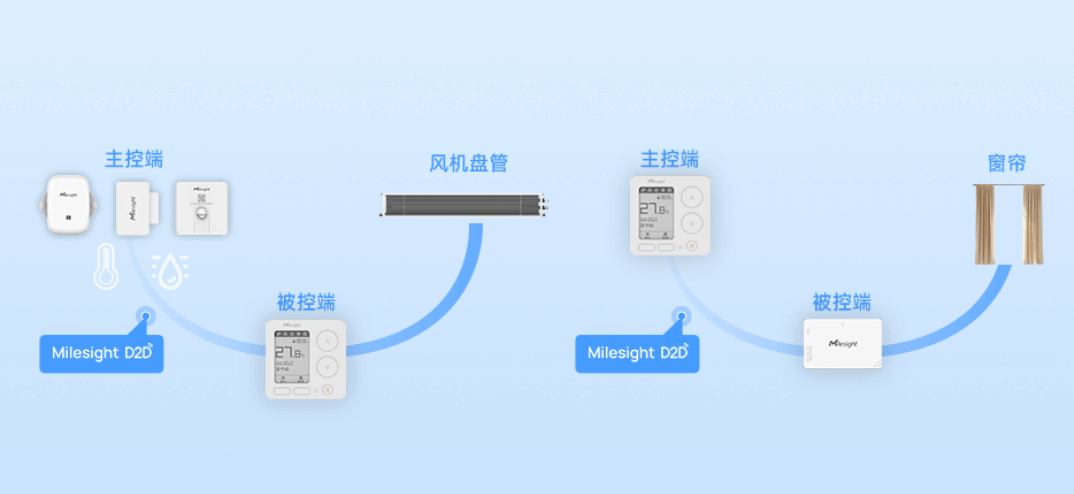 WT303/WT304智能风机盘管温控器可作为主控端或被控端,通过星纵物联Milesight D2D协议,实现设备间本地低时延联动。此外,还可通过协议接收外部温湿度数据作为调温依据,实现更精准的温度控制。
