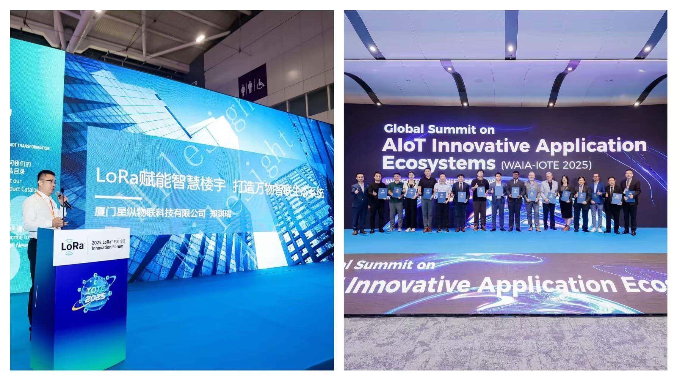 现场,星纵物联采用了 “全系列+明星产品” 的产品展示体系:一方面,全系列产品墙展出LoRaWAN®传感器&终端、LoRaWAN®网关、数据采集/控制器、5G/4G蜂窝设备等超100款产品,丰富的产品种类充分彰显了星纵物联在物联网领域的深耕发展;另一方面,在岛台专区重点呈现18款新品&明星产品,包括WT303/WT304智能风机盘管温控器、VS321无线空间人数传感器、AM319室内环境监测传感器、VS373雷达跌倒检测传感器、VS370雷达人体存在传感器等,精准匹配行业应用场景需求。产品凭借其精巧设计及卓越性能,吸引了众多专业观众前来展台体验交流。其中,WT303/WT304智能风机盘管温控器凭借其创新的产品设计及丰富的产品功能,荣获2025第二十四届“IOTE金奖”创新产品。