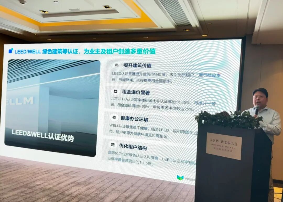 北京威发新世纪渠道生态合作总监焦剑以《智慧办公空间管理促进企业绿色可持续发展》为题,深度剖析了在政策推动与企业ESG需求升级的双重背景下,通过AI技术赋能的智慧空间管理已从单一的设备控制转向“绿色、健康、智能、高效”的综合管理,实现从空间利用率优化到员工体验完善的全方位提升,从而赋能企业可持续发展。