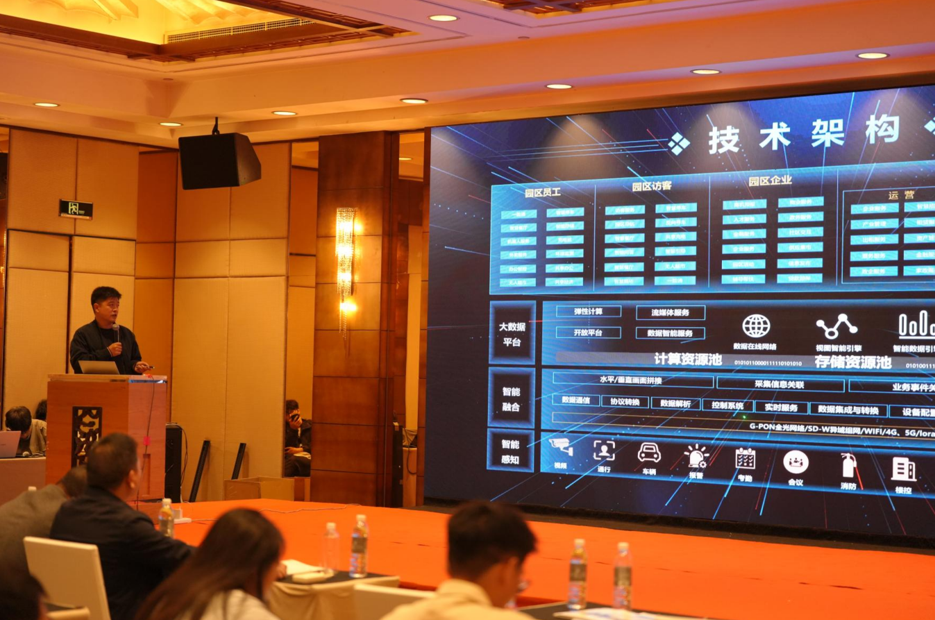 超网实业智慧园区事业部总经理田乐从《智慧园区1+1+N解决方案》内容出发,提出 “基础平台+运营中心+N应用场景” 的园区运营方案体系。通过物联网、AI、中台控制等技术串联,实现园区状态全可视、业务全可管化的智能生态,进一步助力园区运营中智慧招商、能效管理、智慧安防、企业赋能等多维度需求。