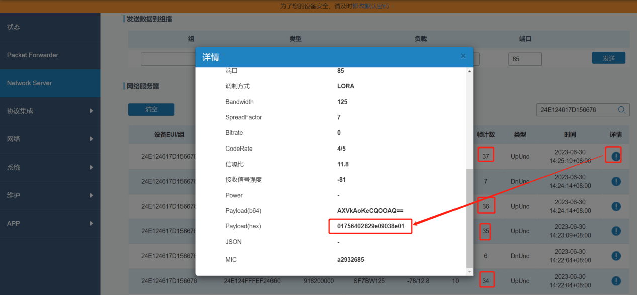 (2)传感器在网关上激活设备,具体可参考技术服务中心《网关内置NS添加终端节点设备》。