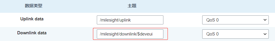 - /milesight/downlink/$deveui,其中/$deveui为固定格式,其他层级内容可自定义