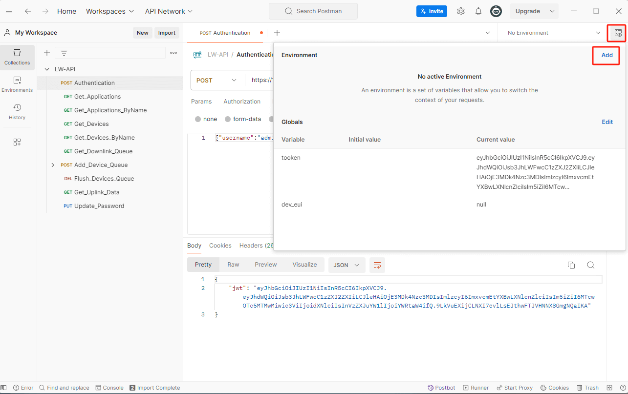 - 下载API的json文件Milesight Gateway API.postman_collection.json。