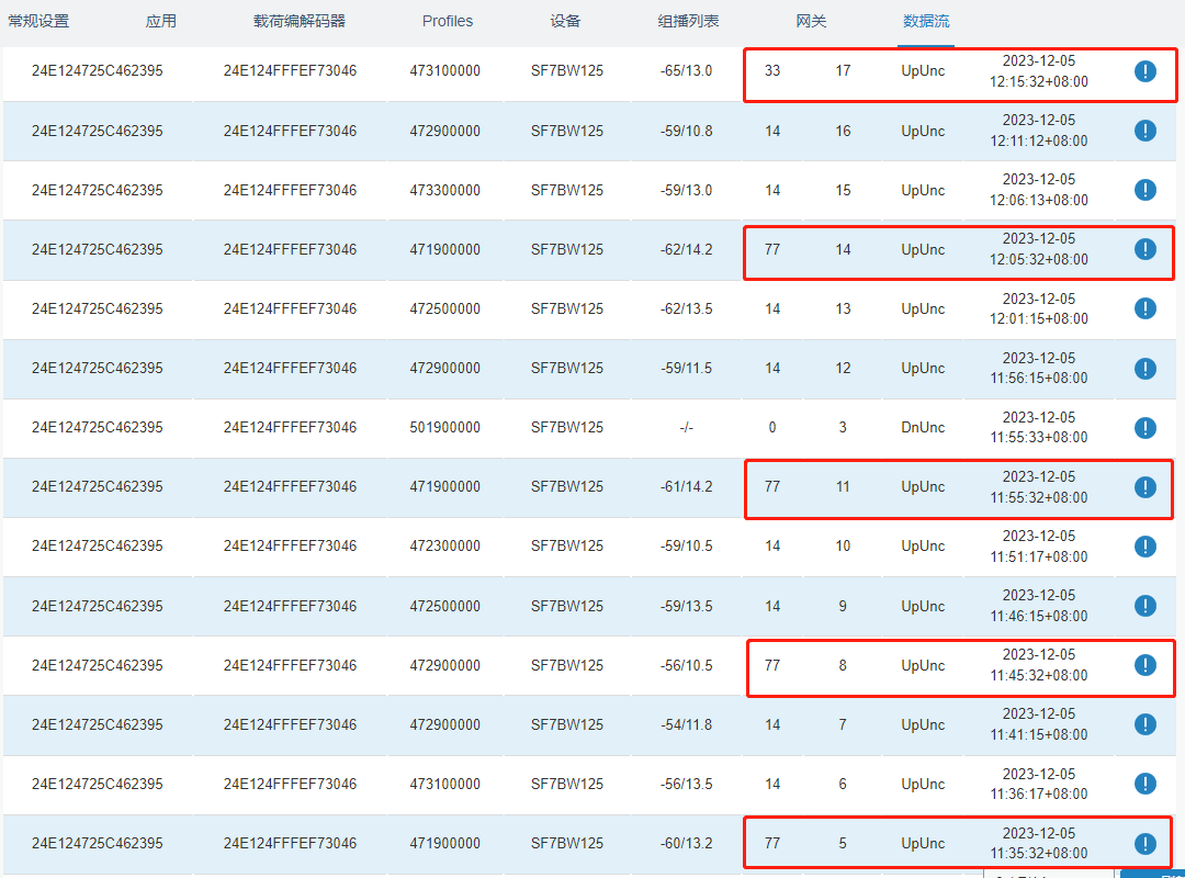 - 重传/回传数据包大小与SF值相关,SF值越大,数据包越小,反之亦然;